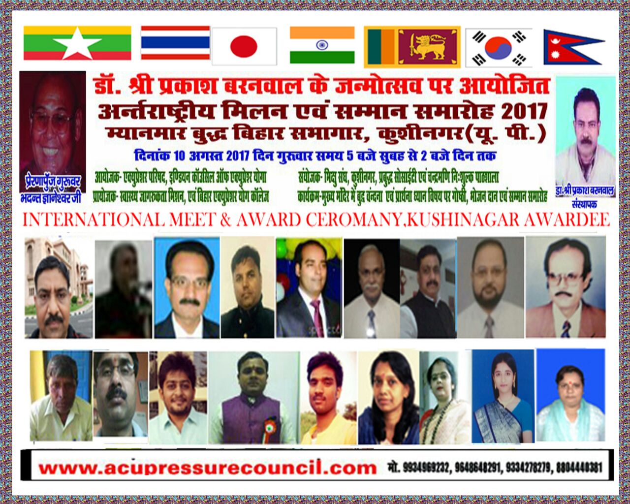 10th August of every year Myanmar Budha Vihar, Kushi Nagar (U.P.) International Meet & Award Ceremony.
